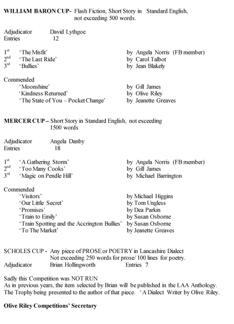 We are an association devoted to the study of Lancashire literature, history, traditions and dialect. Podcasts | Children's Page | Other Competitions | Contact Us | Links LAA Competitions The Annual Competitions are open to members only Click here for downloadable form
