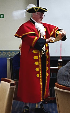 Town Crier making announcements, all day lending a hand. L.A.A.